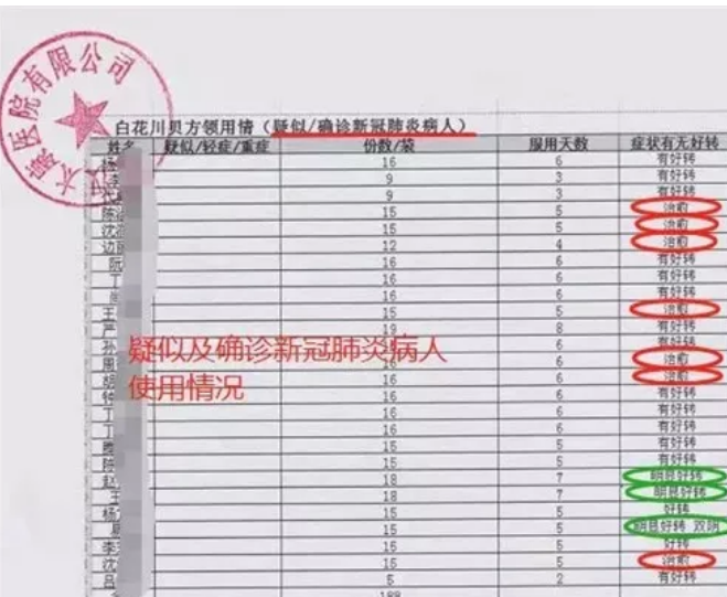 瘟疫无情 中医有道。中医护佑中华民族五千年生生不息。自汉至今300多次瘟疫,中医以其强大的疗效迅速扑灭,没有形成像欧洲黑死病那样导致2000多万人的大规模的人口灭绝。所以,中医的生命力是其强大的疗效,历经历史考验历久弥新生机勃勃。这次新冠肺炎疫情发生后,武汉太康医院作为新冠肺炎定点医院,在院长孙振刚的带领下和上海中药创新研究中心及其下属中药创新成果转化中心密切合作,治疗中除西医常规治疗外,在医护人员预防和部分疑似和确诊病人中使用"白花川贝方”,经过十几天使用,疗效惊人。